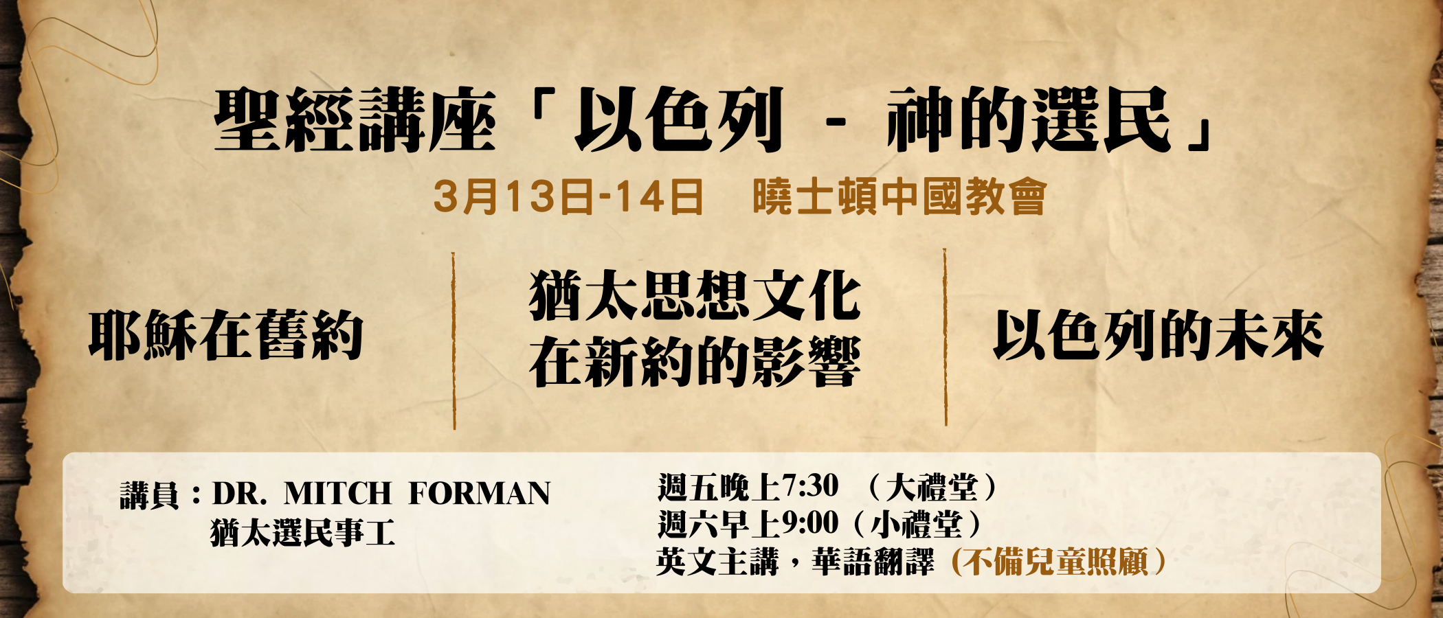 聖經講座:「以色列 - 神的選民」 (英文主講,華語翻譯)